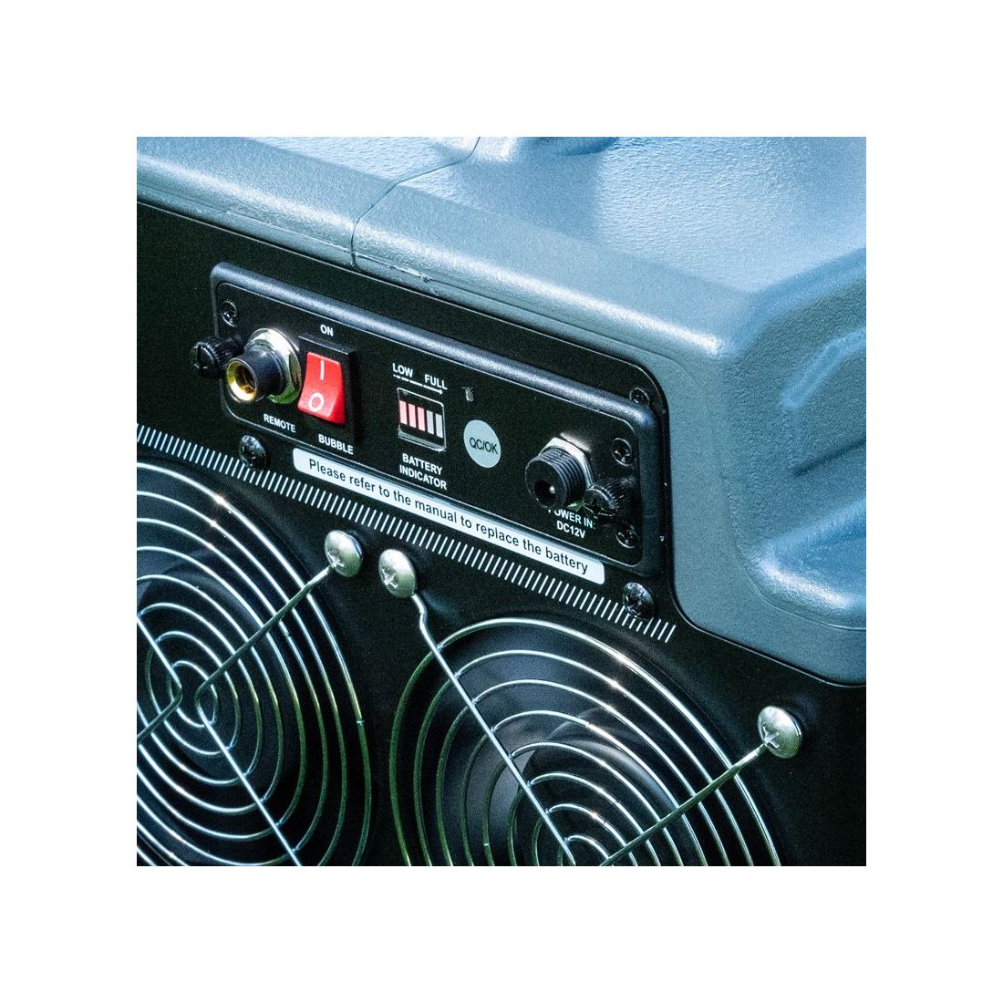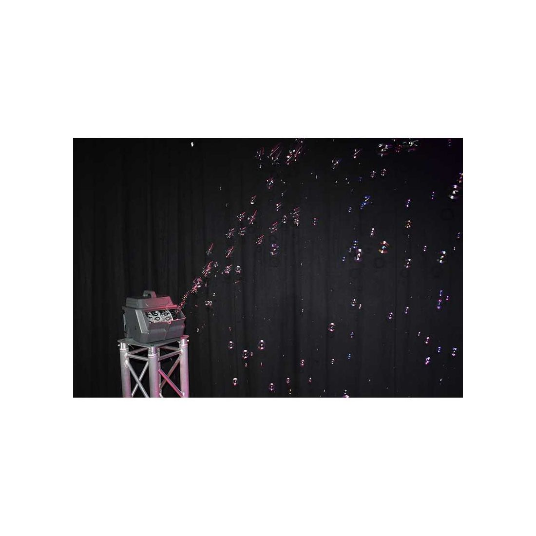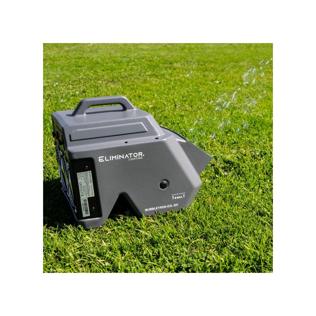 Add a touch of bubble magic anywhere you go! The Eliminator Lighting Bubbletron EXL GO, the ultimate battery-powered bubble machine for adding a touch of magic to your stage or mobile performance or party. Effortless to use, simply pour in the bubble juice, switch it on, and let the Bubbletron EXL GO work its bubbly magic. With its high-output fan and dual bubble wands, this portable wonder generates hundreds of bubbles per minute, ensuring a mesmerizing display. The extra-large, durable casing and unique dual fan system propel bubbles further into the air. Its 2-liter fluid tank and 4.0Ah battery provide 3 hours of non-stop operation. Perfect for bands, DJs, clubs, event producers and stages, the Bubbletron EXL GO comes complete with a BUBGO-WR Wireless Remote Control for added convenience.