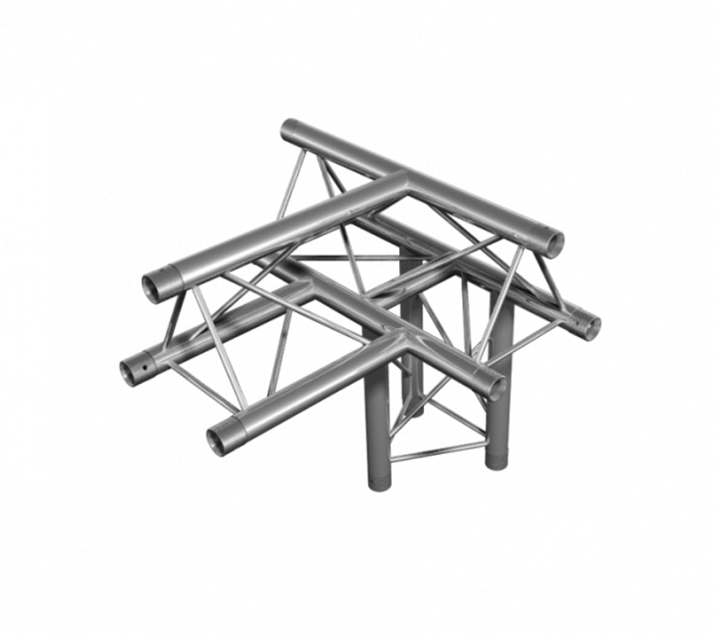 سلسلة DT23 عبارة عن نظام جملون ثلاثي النقاط مزود بوصلة مخروطية (صنبور)، وحلقات تثبيت، ومشبك أمان. يُغلق نظام التوصيل السريع هذا بإحكام باستخدام أنبوب الحزام، مما يسمح بالتركيب السريع أثناء عمليات التجميع والتفكيك المتكررة. الأنابيب الرئيسية الثلاثة مصنوعة من أنبوب ألومنيوم بقطر 35 مم، وسمك جداره 2 مم، مما يمنح هذا النظام نسبة قوة إلى وزن ممتازة. يبلغ قطر الدعامات 8 مم. تتضمن كل قطعة جملون جميع الوصلات المخروطية اللازمة، والدبابيس الفولاذية، ومشابك الأمان.