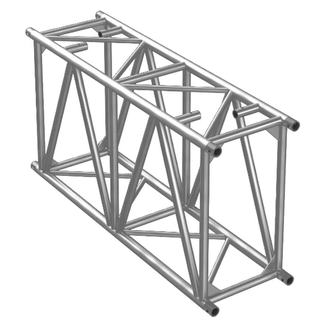 يُغلق نظام التوصيل السريع بإحكام باستخدام أنبوب الحزام، مما يسمح بالتركيب السريع أثناء عمليات التجميع والتفكيك المتكررة. الأنابيب الرئيسية مصنوعة من أنبوب ألومنيوم بقطر 60 مم، وسمك جداره 6 مم، مما يمنح هذا النظام نسبة قوة إلى وزن ممتازة. يبلغ قطر الدعامات 30 مم، وسمك جدارها 3 مم. تتضمن كل قطعة من الجمالون جميع الوصلات المخروطية اللازمة، والدبابيس الفولاذية، ومشابك الأمان.