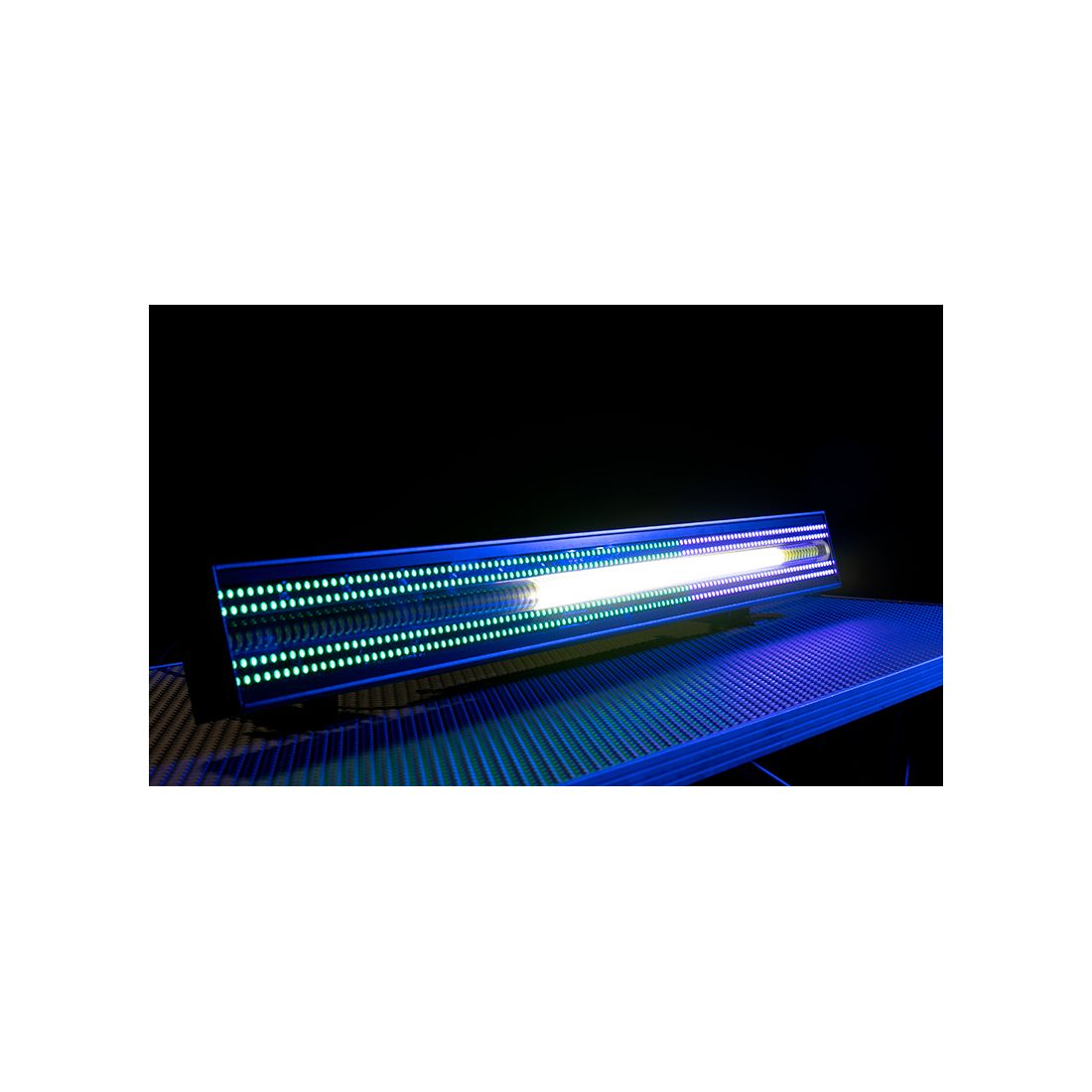 يتميز ADJ Jolt Bar FX بشريط مركزي من 112 مصباح LED أبيض بارد SMD بقدرة 5 واط، محاطًا من كلا الجانبين بـ 448 مصباح LED SMD لمزج الألوان RGB بقدرة 0.3 واط. يتيح هذا للوحدة نفسها توليد وميض أبيض مكثف وتأثيرات مطاردة متعددة الألوان. كما أن كلا النوعين من مصابيح LED مقسمان إلى مناطق يمكن التحكم فيها بشكل مستقل (16 أبيض و32 لونًا)، مما يعني أنه يمكن استخدام الوحدة أيضًا لتوليد وميض ومطاردة وتأثيرات أخرى جذابة.