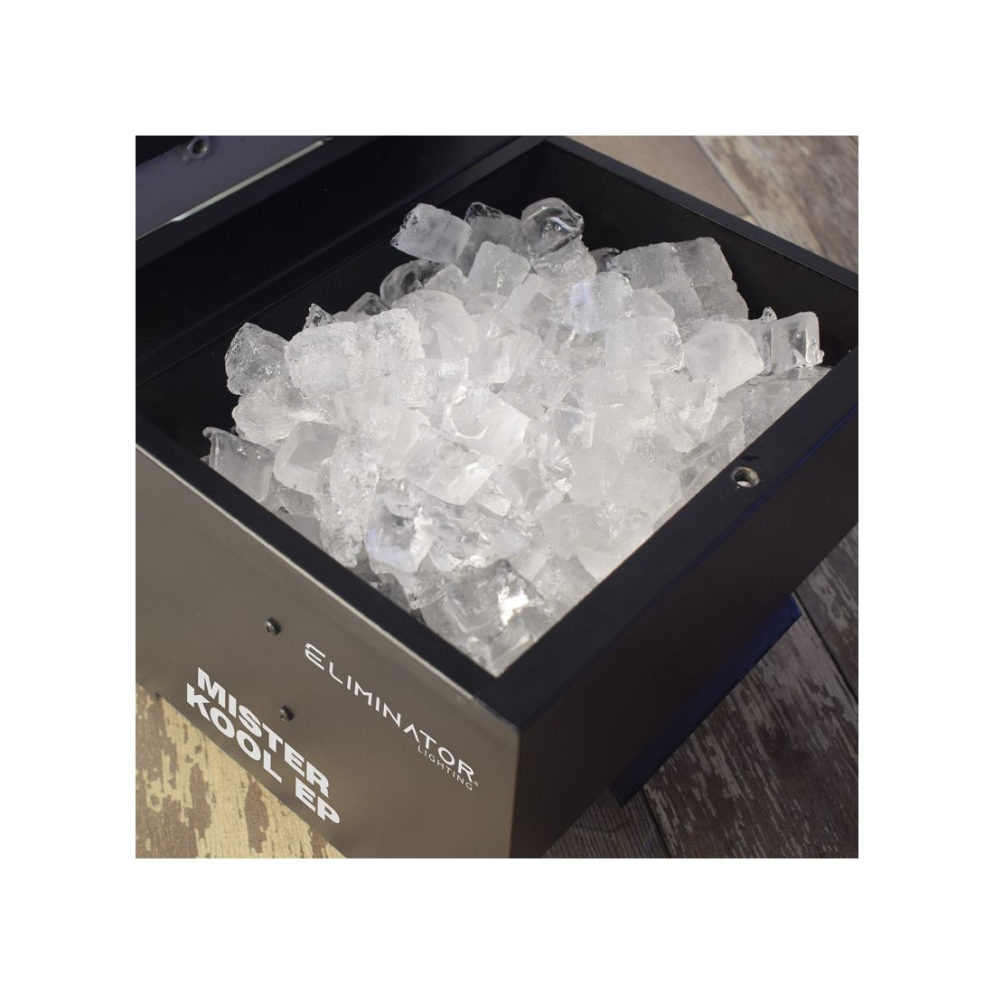 The Mister Kool EP continues the legacy of its predecessors, using standard water-based fog fluid and ice cubes to create the sought-after 'dry ice' effect without the expensive of dry ice and bulky fog chillers. Its ice hopper can hold up to 4 pounds of ice, ensuring a consistent low-lying fog effect.
