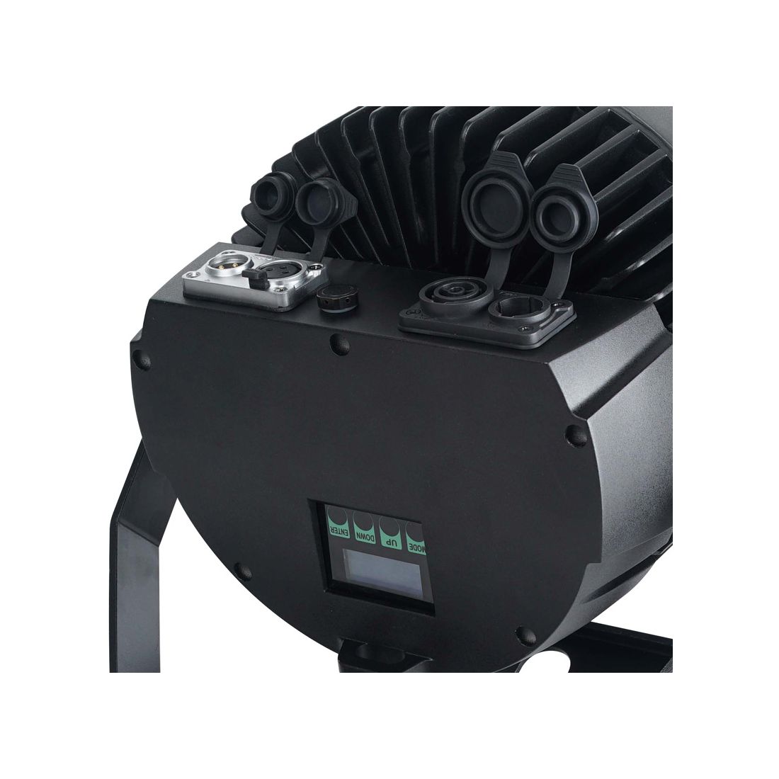 18P HEX IP professional features include: 4 DMX modes, 5 operational modes, 4 dim modes, flicker free operation and a 4-Button DMX menu with digital display. The unit is equipped with IP65 Locking Power and IP rated 3-pin DMX rubber covers and connectors. In addition to the IP rated power linking and DMX cables be used, but stranded 3-pin DMX and Locking Power cables may also be used when used indoors.