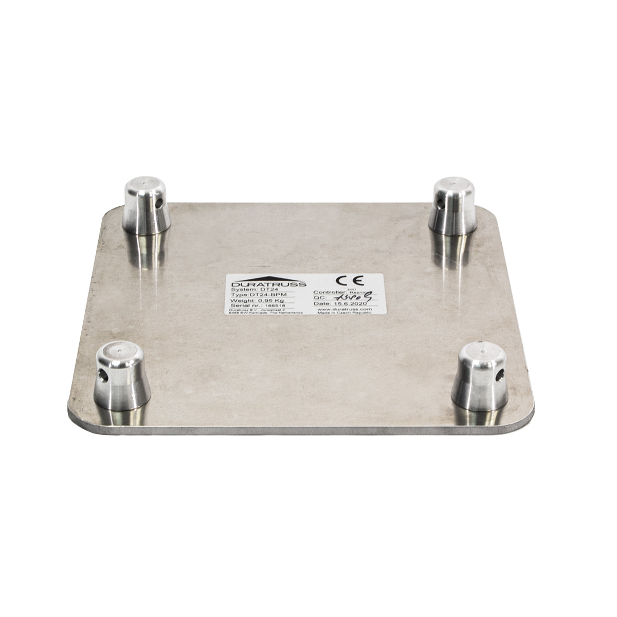 The DT24 series is a 4-point-trussing-system with conical coupler (spigot), trusspin and safety clip. The advantage of the quick connector system lies in the fact that it closes force-locking the belt tube and allows rapid assembly and dismantling. The four tubes are made of 35mm aluminum tube with a wall thickness of 2mm and give this system an outstanding strength-to-weight ratio. The struts have a diameter of 8 mm. The system includes only mounted halfcones.