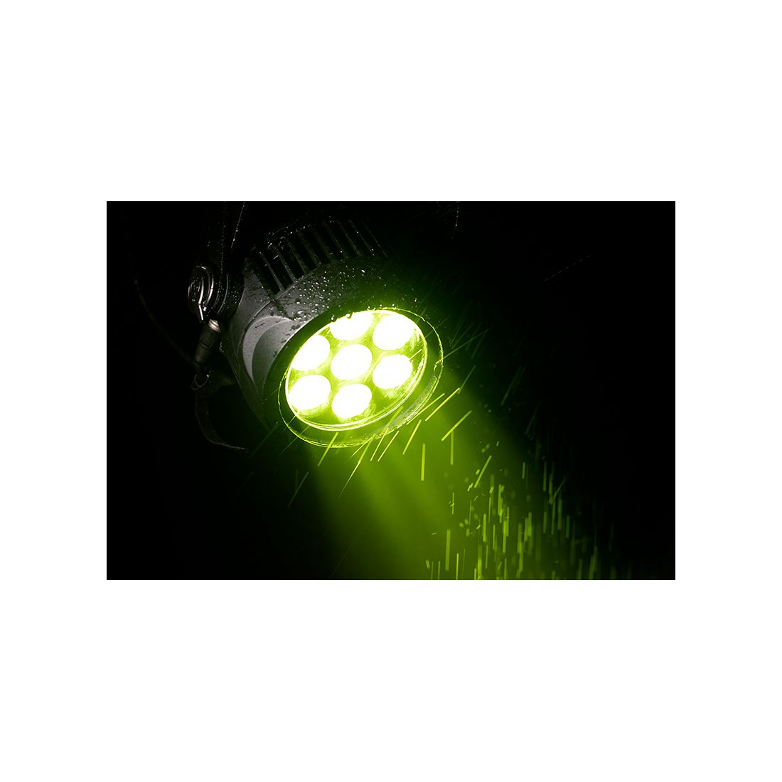 The ADJ Encore LP7IP is a versatile IP65 outdoor rated Par with 7 x 20-Watt (4-IN-1: Red, Green, Blue & Lime) Quad LEDs. With a 10-degree beam angle, users may produce wide washes with smooth color mixing from 64 built-in color macros utilizing red, green, blue and lime LEDs. Not only is this LED Par great for lighting indoor stages and venues, but with its IP65 rating, it’s a great solution for temporary outdoor lighting of stages or events. The IP65 rating helps protect the fixture from rain, snow and dust.