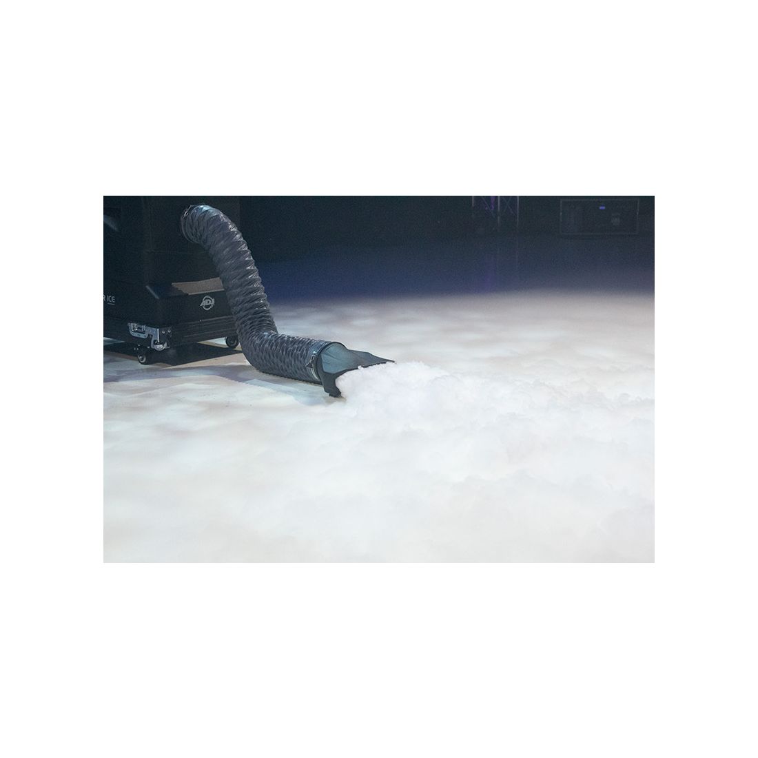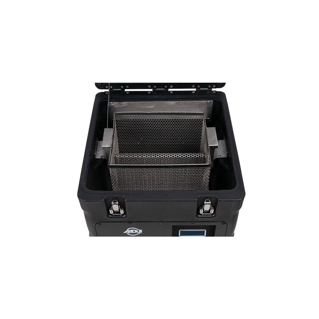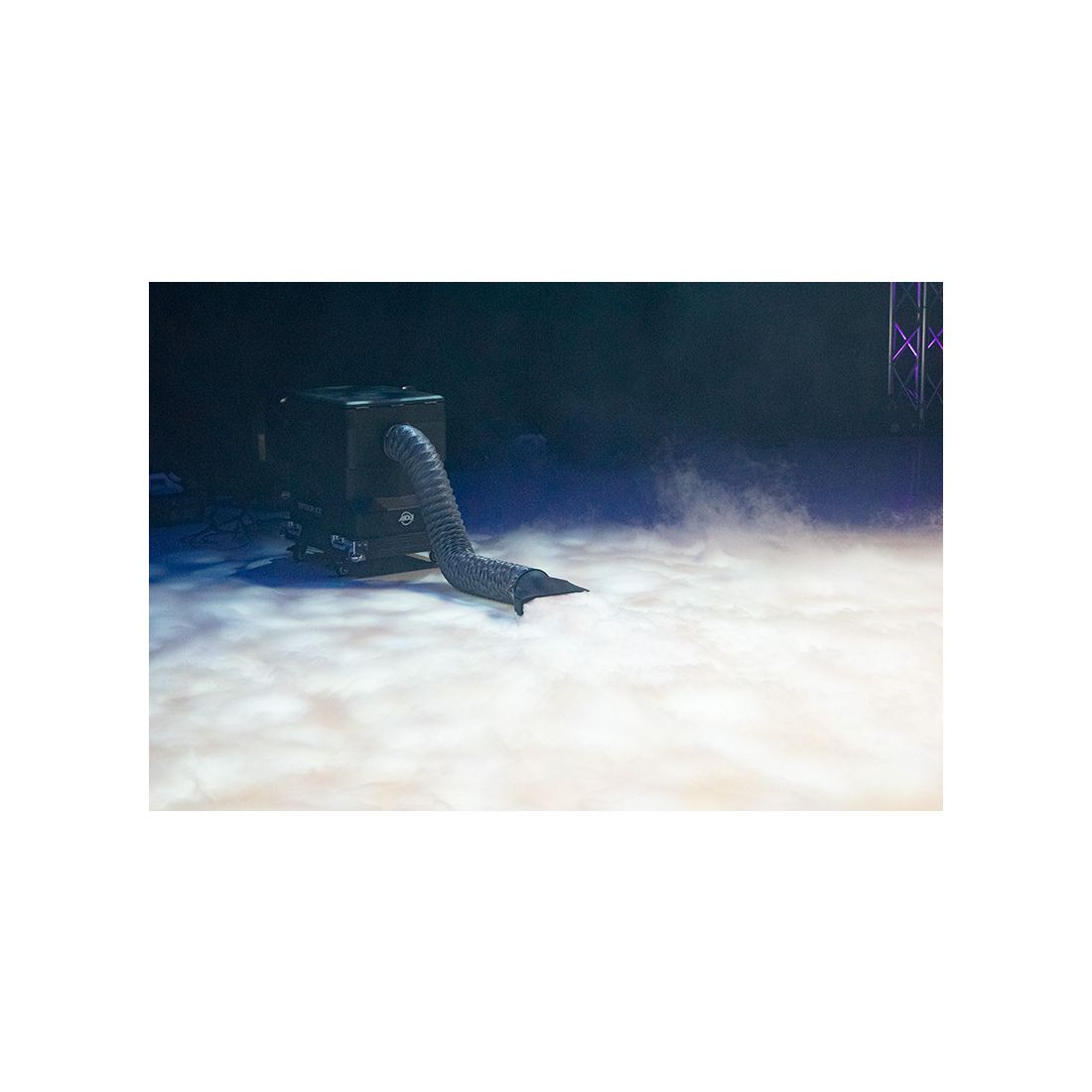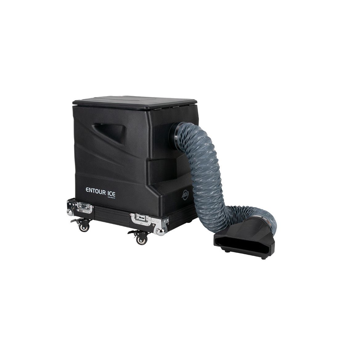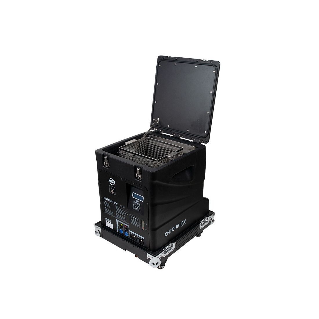 The Entour Ice is a tour-grade low-lying fog machine that creates a thick cloud of smoke that stays close to the floor when used with dry ice. It comes in a road case with casters and features DMX and other on-board controls, a dry ice basket and a low water level sensor that automatically shuts off the pump.