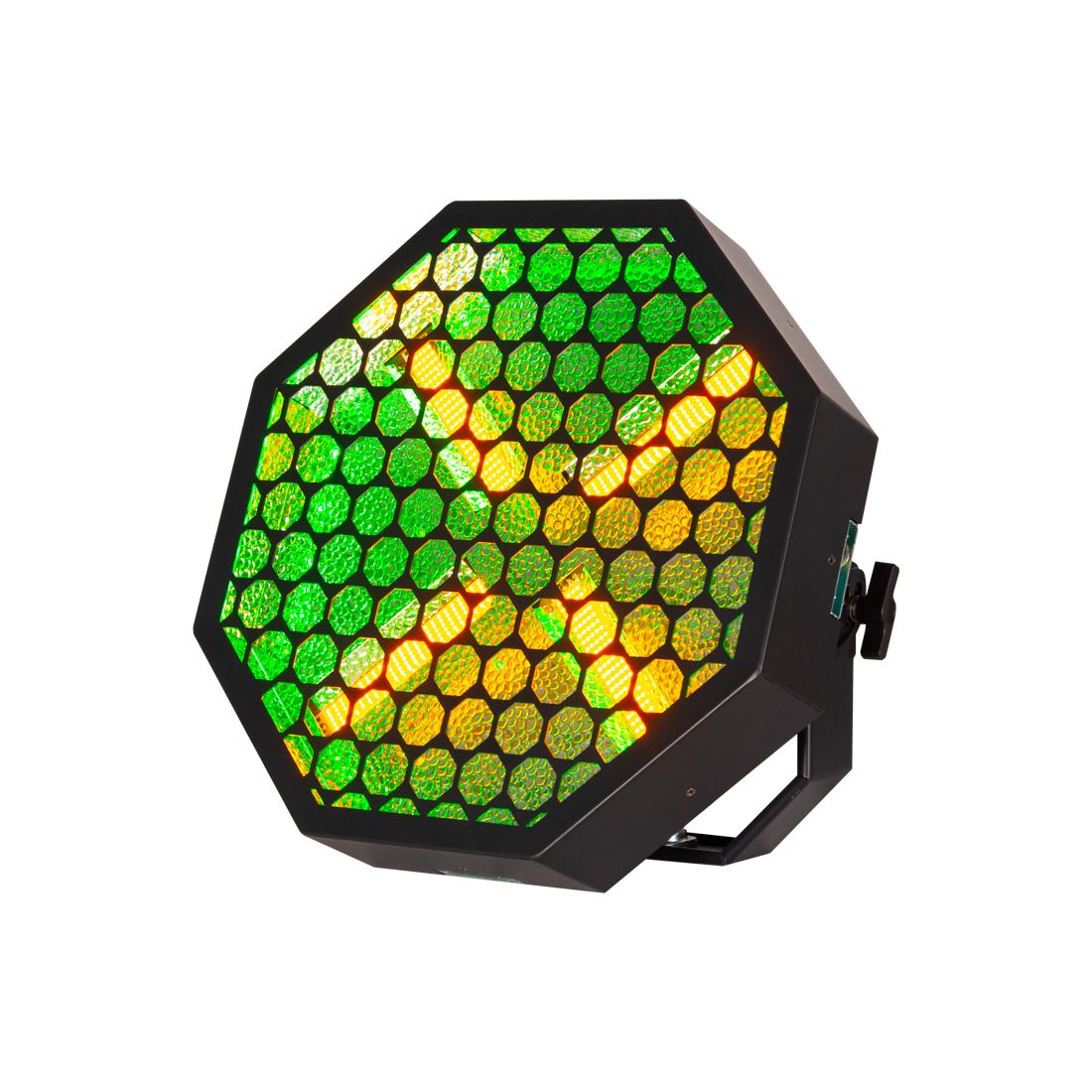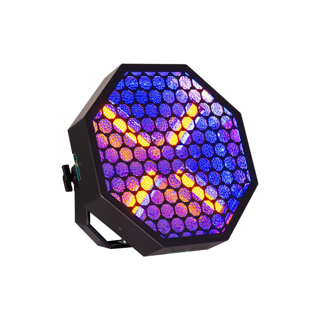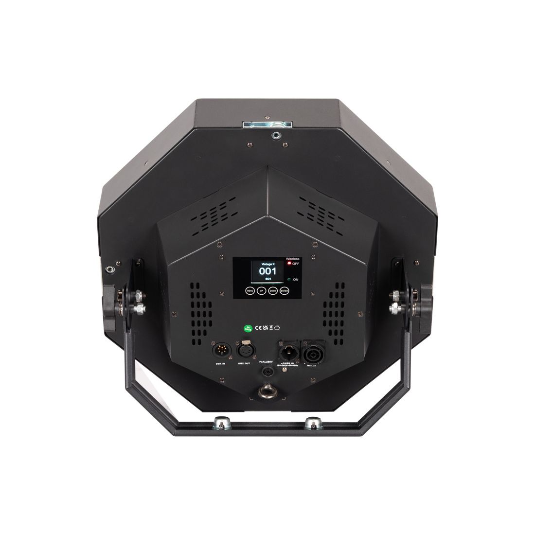 Vintage X is a highly adaptable scenic lighting fixture that sparks creativity and captures attention with its dual-purpose design. Featuring four 60-watt foreground amber LEDs (2000K), it emulates the warm glow of tungsten for a retro blinder effect, while 64 vibrant 3-watt RGB LEDs deliver rich, dynamic color tones and stunning effects. This combination allows for smooth dimming transitions and bold, captivating lighting displays in an intriguing octagon shaped fixture.