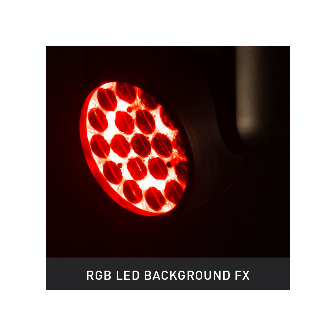 Equipped with nineteen 30-Watt RGBL LEDs, the fixture offers advanced virtual CMY color mixing, a wide motorized zoom range, and smooth electronic dimming, making it ideal for crafting everything from precise beams to expansive washes. Its dynamic design is enhanced by 30 RGB background LEDs and a 40-light RGB LED ring. Its foreground and background LEDs are fully pixel-mappable for complex patterns and dazzling effects. Built-in pixel effect programs and color macros further expand its creative possibilities.